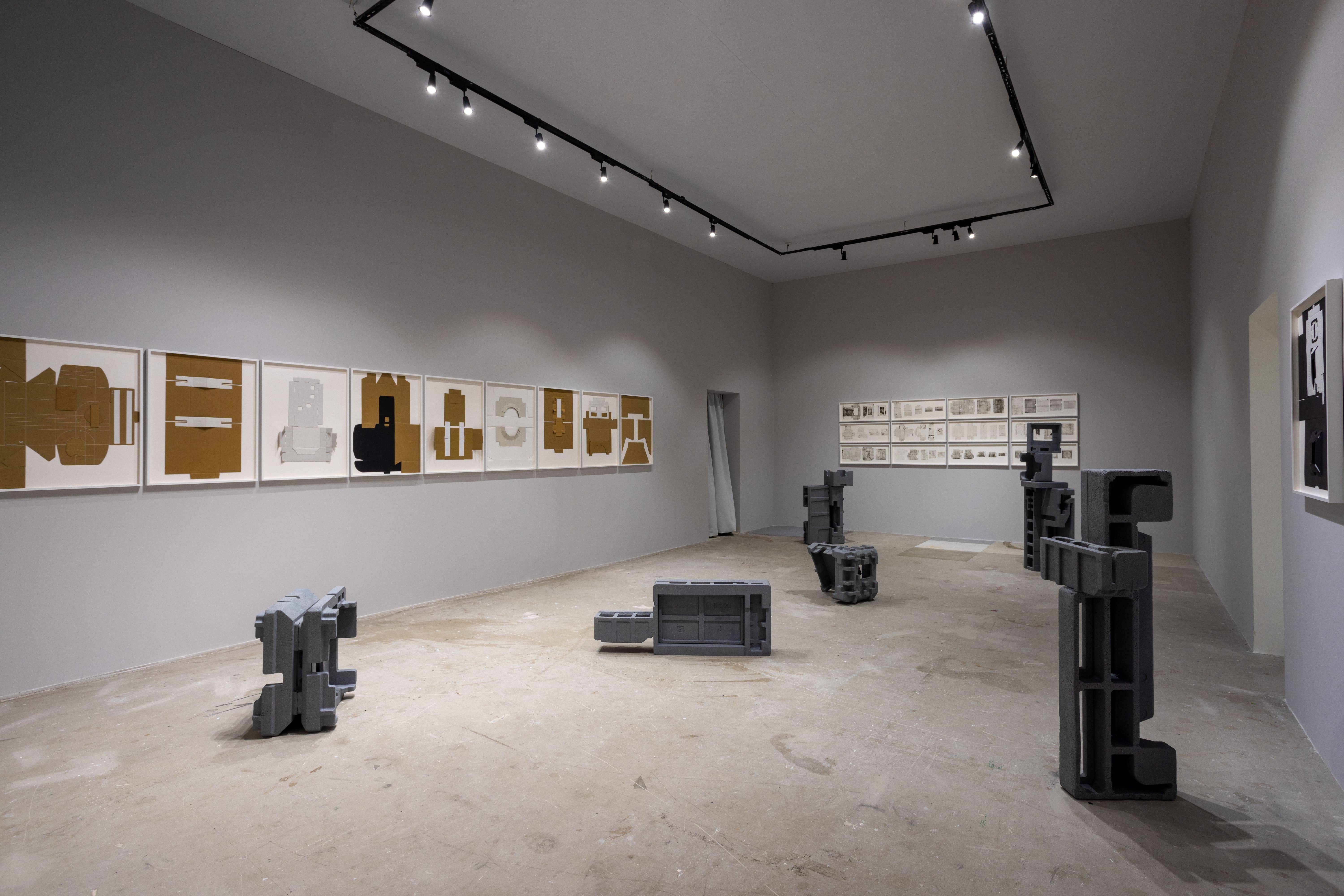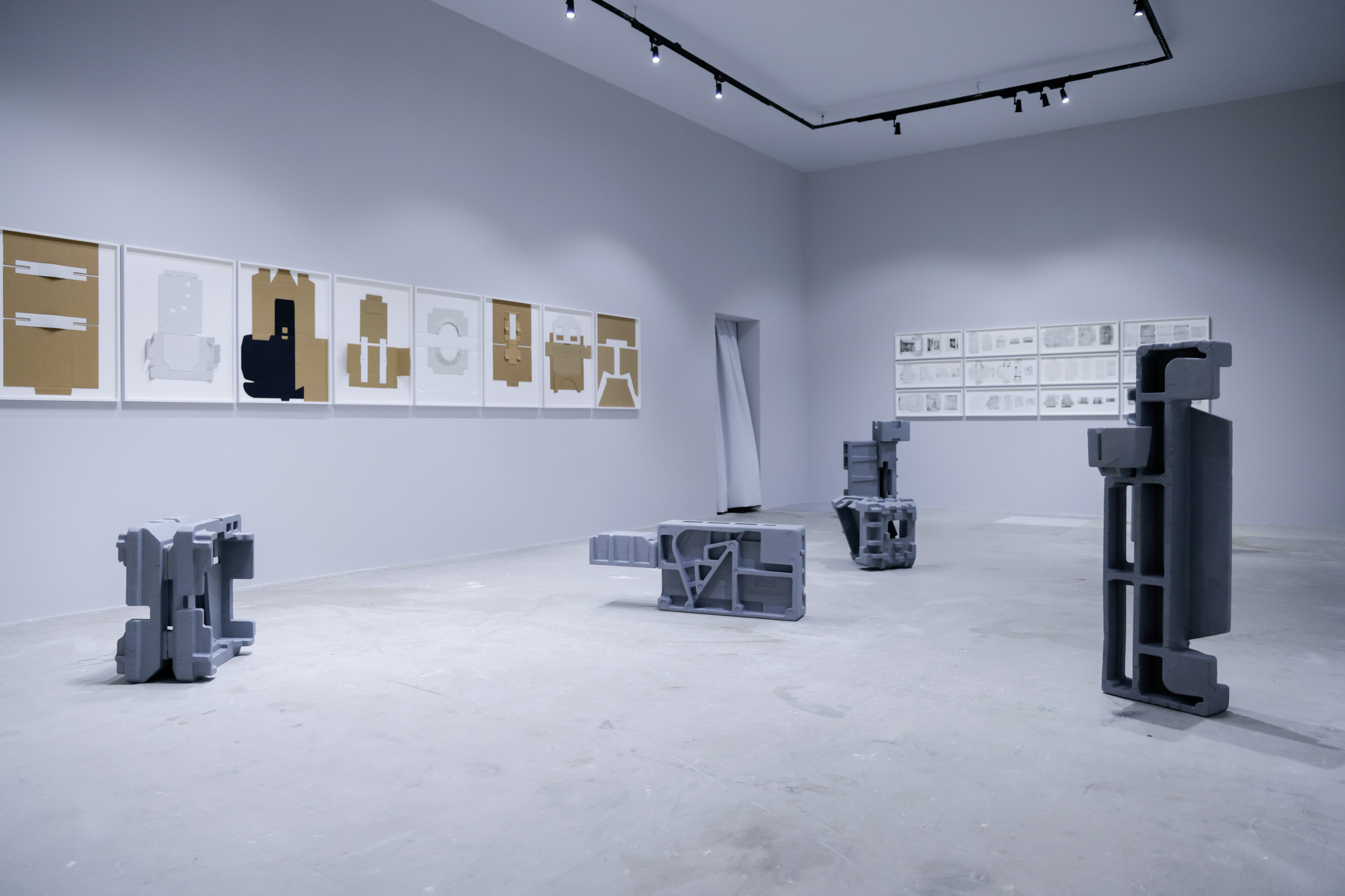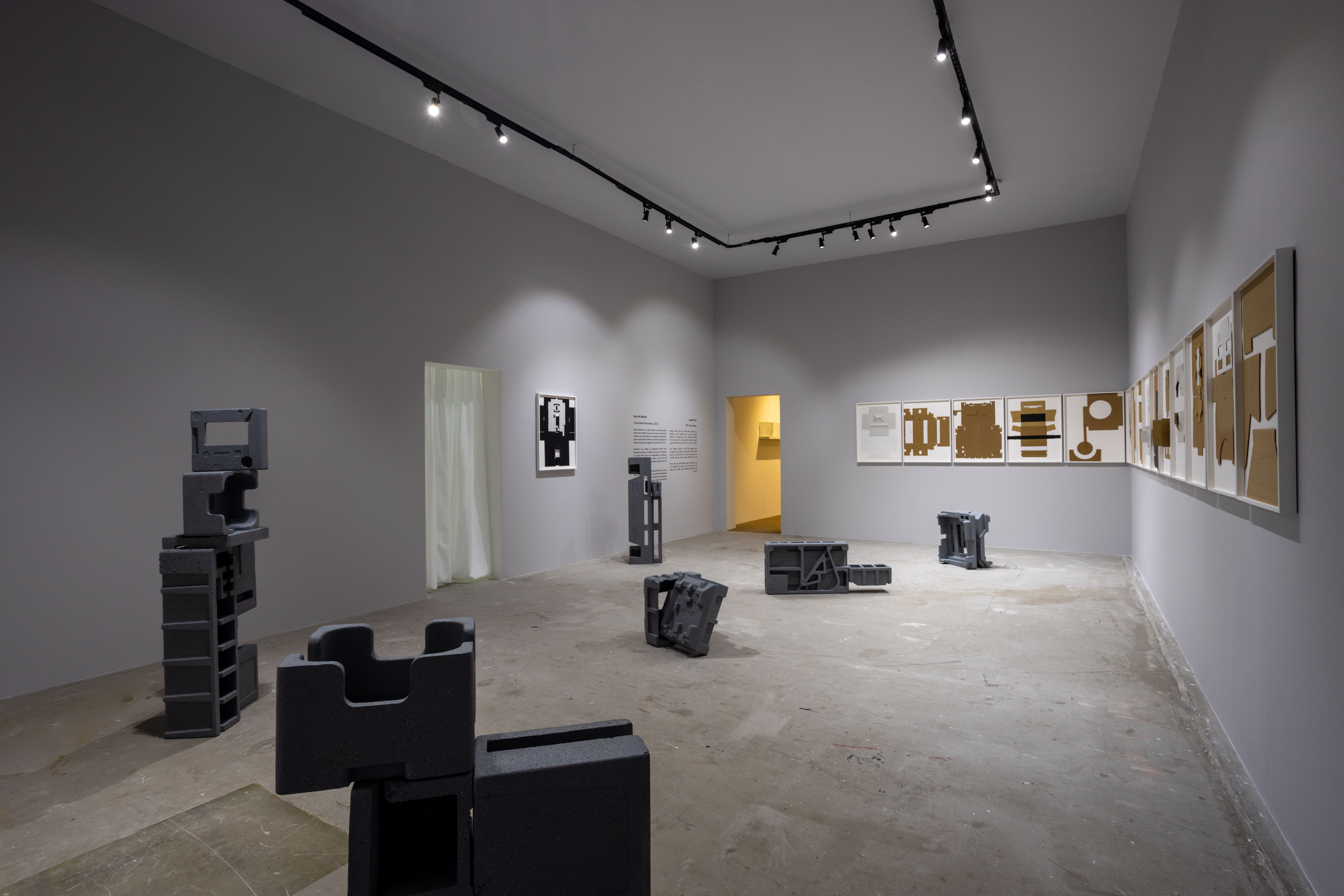Sarah Al Mehairi’s art investigates her presence within the elements of environments in flux, deconstructing and rebuilding them through a prism of fact and fiction, while crafting a language to explore these interrelationships. For Transitional Permanence, commissioned for Abu Dhabi Art’s "Beyond: Emerging Artists" 2022, Almehairi created an installation derived from discarded packaging. Throughout the process, containers are broken down, built, and reassembled as continuous iterations of themselves. As objects move from one medium to another, the artist questions whether there are boundaries to dimensionality? With the act of repetition, reproducibility has no end. Is there a beginning? How does one position themselves in a landscape of multiples? Through her investigative connections, the work becomes a constant reinvention of another